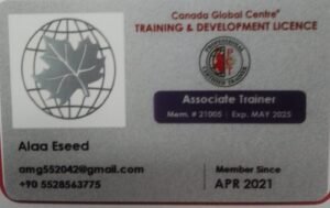 – مدرب معتمد من المركز العالمي الكندي – عضوية رقم (PCT – 21005).